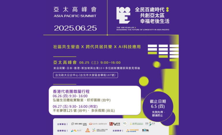 今年創伶滙作為由銀享全球主辦「2025亞太高峰會」的香港社群夥伴,我們將組織香港代表團參加高峰會外,更會參訪由銀享全球安排尊屬香港團行程,認識台灣提倡「活躍銀齡」的創新機構!現正接受報名!