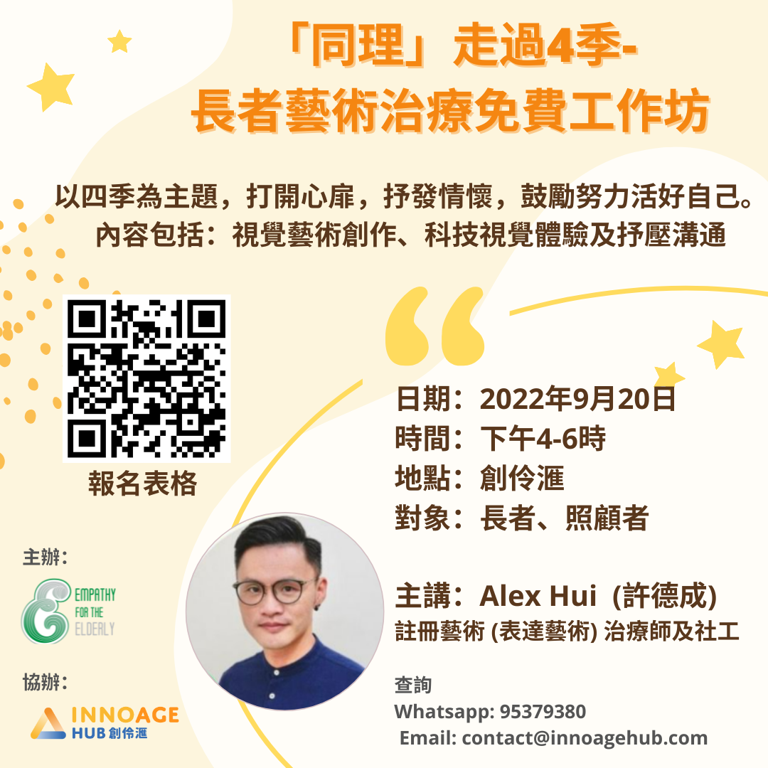 主講:Alex Hui (許德成, 註冊藝術 (表達藝術) 治療師及社工)